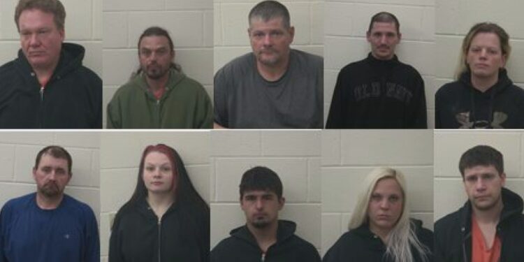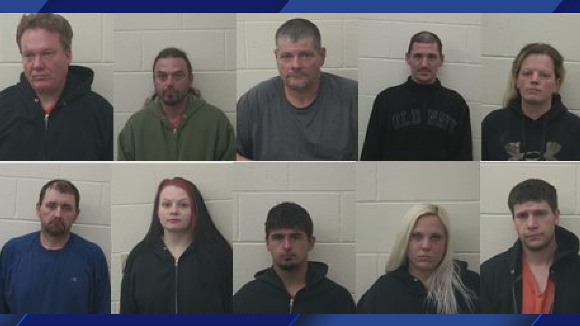 Police arrested 48-year-old Gabriel J. Kurek of Peshtigo, 45-year-old Bruce A. Cassady of Lena, 49-year-old Jonathan L. Block of Pound, 33-year-old John R. Hager of Grover, 33-year-old Crystal S. Barthel of Antigo, 23-year-old Maya E. Lindsay of Marinette, 23-year-old Hunter L. Shehow of Peshtigo, 27-year-old Nickolas J. Wood of Marinette, 47-year-old Scott M. Klatt of Menominee, and 24-year-old Maggie M. Throm of Menominee.