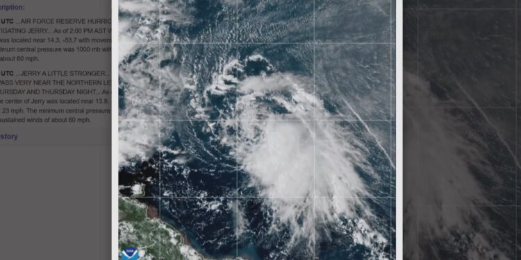 WASHINGTON, D.C. – Experts are keeping an eye on Tropical Storm Jerry over in the Atlantic. It developed earlier this week, but it’s likely to not make a direct hit on the eastern seaboard. However, the National Hurricane Center believes Jerry could develop into a hurricane by the weekend.