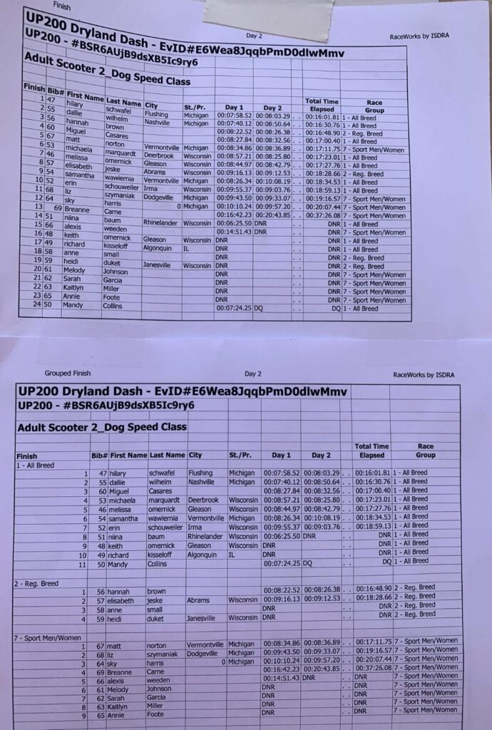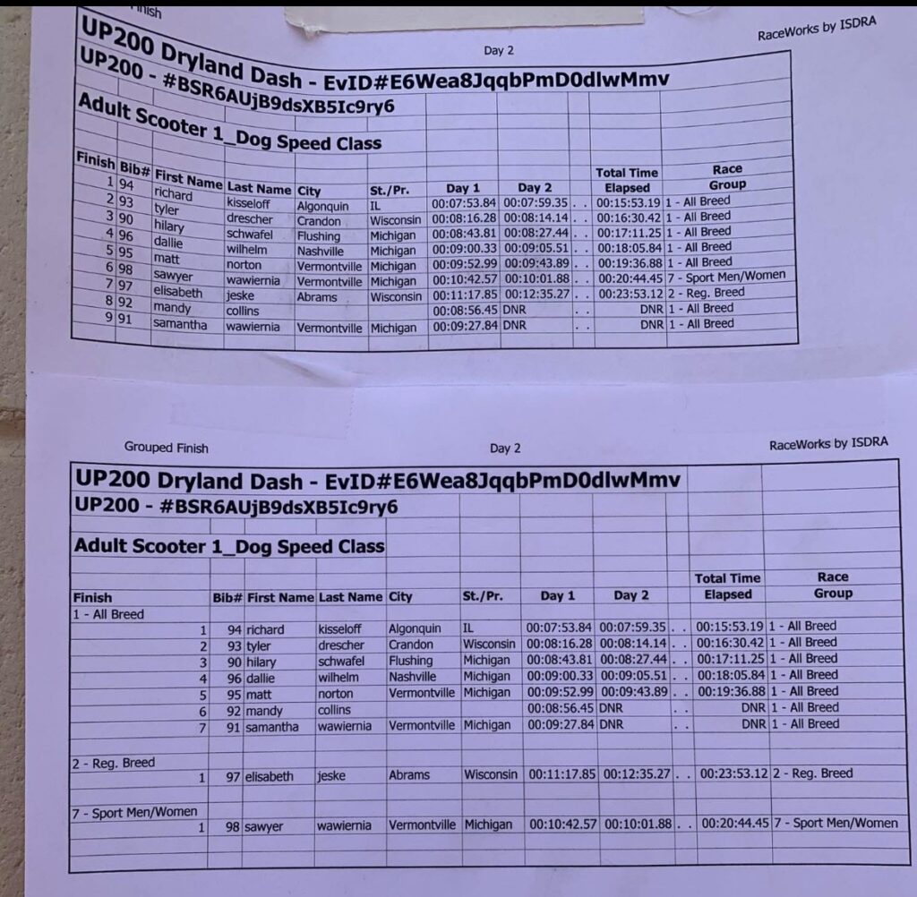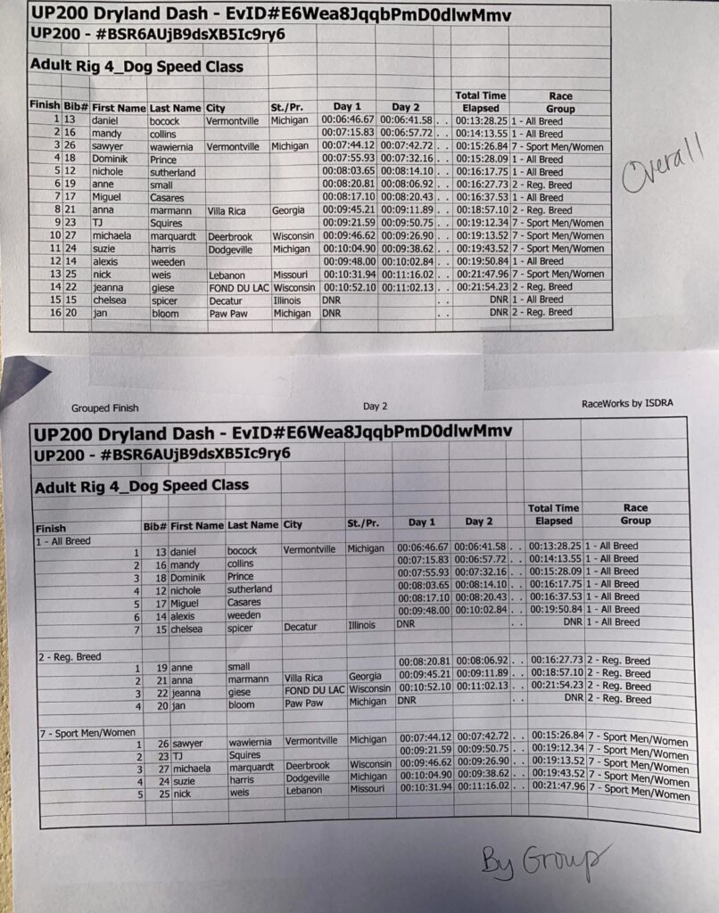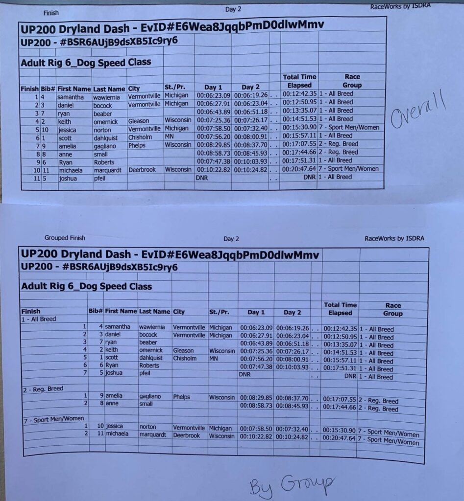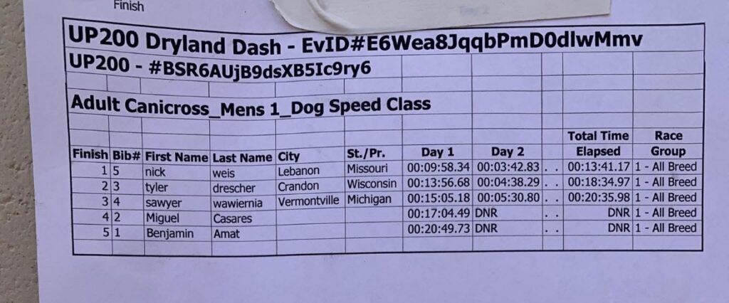 In helping those mushers, a large amount of volunteers over the weekend included students from Northern Michigan University. Teams raced both days across multiple pack sizes, averaging their times together for a final score. Those scores can be found below.