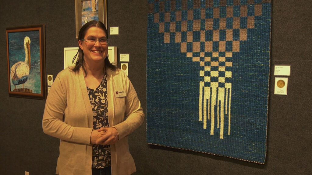 “I believe it’s for the use of the color to make you feel like you’re being pulled right into the piece,” Oman said. “There’s a lot of movement in the piece. Carol uses recycled materials. She uses a computer program to put her layout together before she strings her loom, then she does all the weaving herself. The juror really appreciated the time and the effort.”