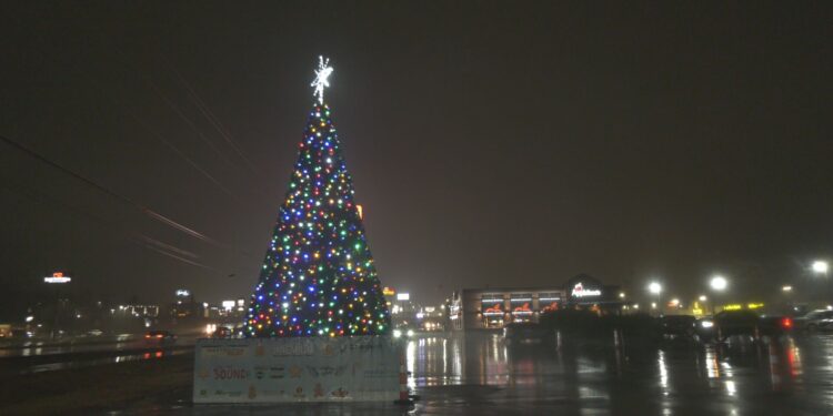 The tree is located along US-41, between the Marquette Applebees and Aspen Dental, and will be up through the end of the year.