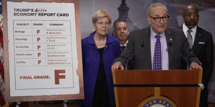 Schumer, along with several of his colleagues, unveiled a five-point initiative targeting health care, energy, housing, groceries and everyday household goods—along with tariffs that Democrats say are driving up costs.