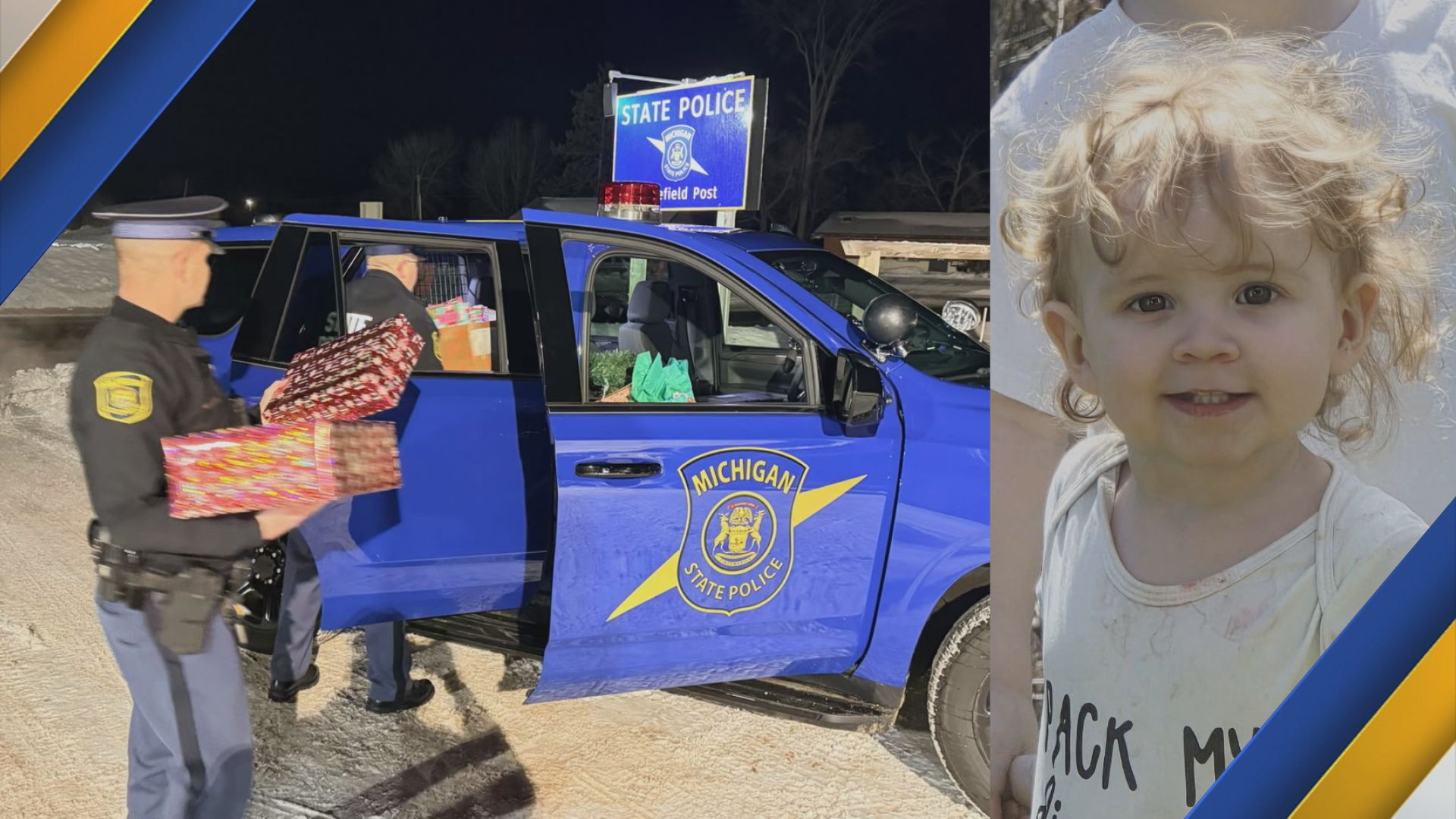 UPPER PENINSULA, Mich. (WZMQ) – Instead of Santa and his sleigh, Michigan State Police (MSP) troopers aboard their “Blue Goose” patrol car brought Christmas cheer to a young girl fighting cancer far from home.