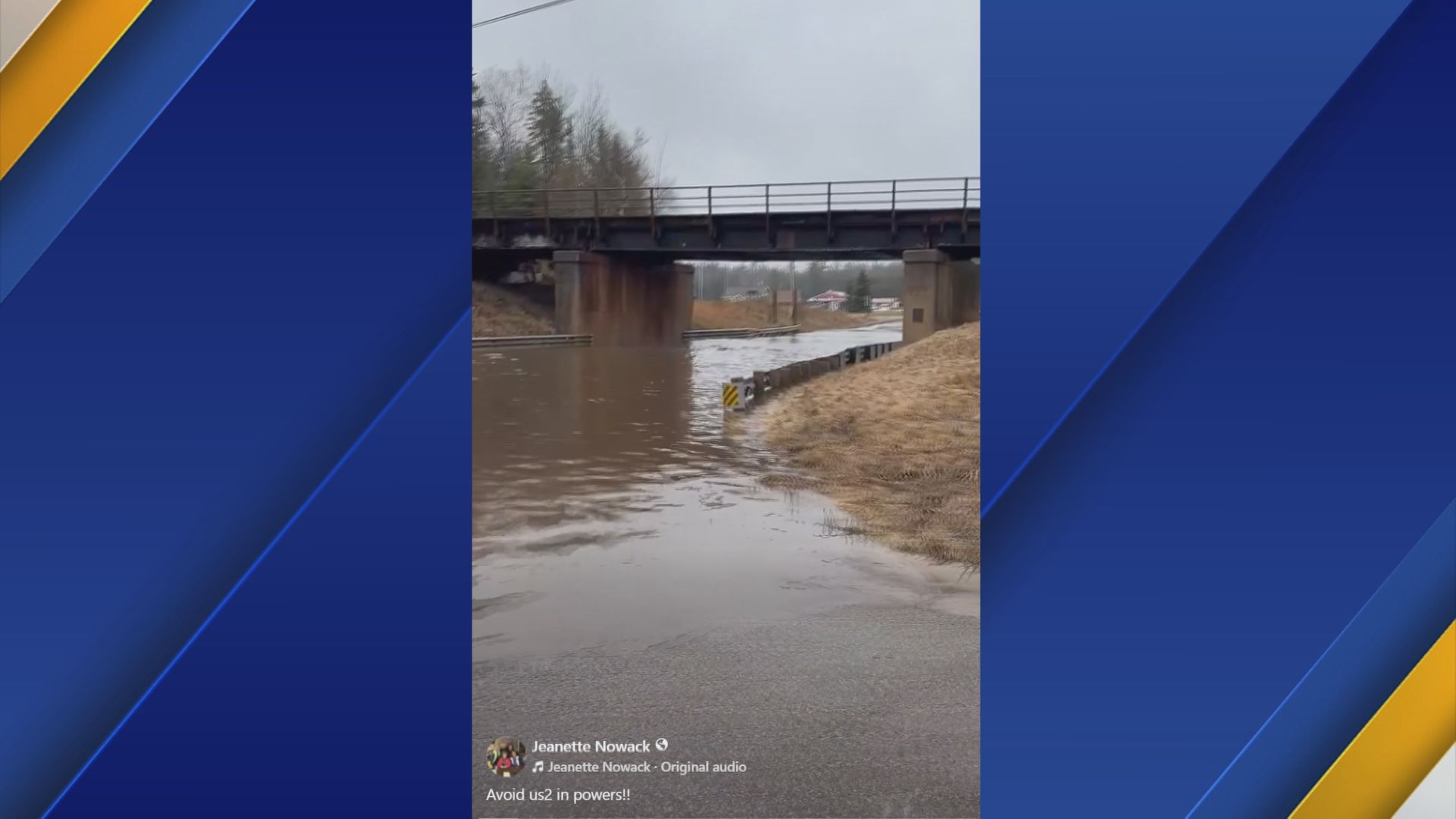 The above image, taken from a video provided to WZMQ 19 by Jeanette Nowack, shows conditions on US-2 in Powers in the early afternoon. While the road was still flooded a few hours later, Nowack says motorists were eventually able to pass through if driving slowly.