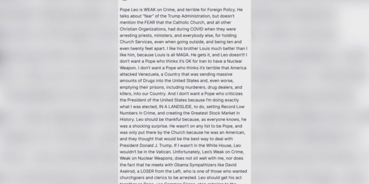 “We don’t like a pope that’s going to say that it’s OK to have a nuclear weapon,” President Trump claimed. “We don’t want a pope that says crime is OK in our cities. I don’t like it. I’m not a big fan of Pope Leo.”