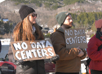 “That’s about the same amount of energy use as 1.1 million homes for a single data center. They also use an extreme amount of water, and the extreme energy use causes air pollution,” said protester Nolan Wright.